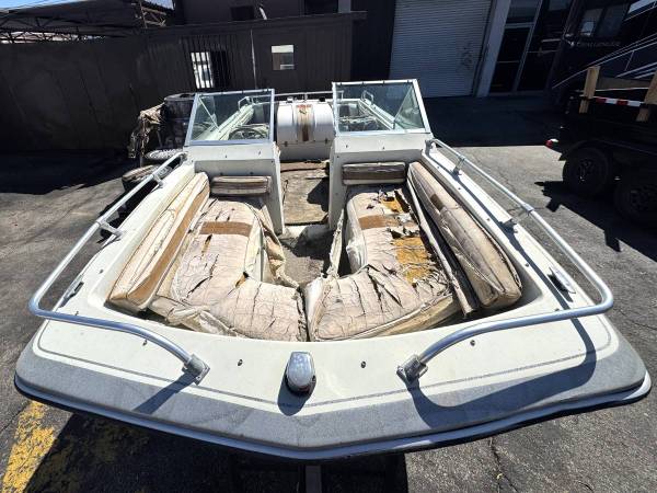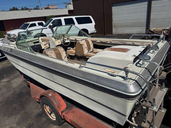 I am selling this *RUNS* - GALAXIE RUNABOUT TRI-HULL - 188HP MOTOR MERCRUISER OUTDRIVE. This Galaxie boat body is in VERY good shape. The hull and the overall fiberglass body are free of major damages or repairs. For the age of this boat, it is in surprisingly good shape as far as the fiberglass is concerned. The upholstery, as you can see in the photos, needs work I have powered on the motor, and the motor and drive are working good. I have posted many photos of the boat, and also have videos to show the motor running. TRAILER IS INCLUDED.