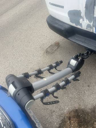 Thule 2 inch hitch mount 4 bike rack with key arm swings down for easy access to rear of vehicle in excellent cond ready to use I’m sells on Amazon for 450 dollars I’m in Granada hills