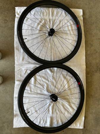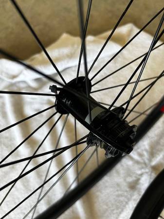 New takeoff wheelset, thru-axle, tubeless ready, centerlock brakes, HG 11 Hub. Taken off a newly built Pinarello road bike.