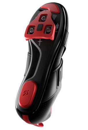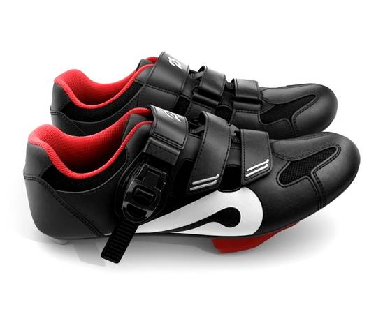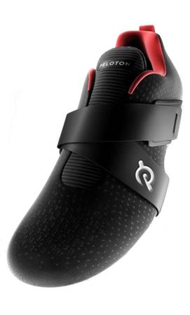 The red clips on the bottom of the shoes anchor them right onto the pedals so your foot CANNOT slide off. These have a triple Velcro strap design so they are adjustable to tighten the shoe to your own comfort level. They have breathing holes throughout the fabric to keep your feet from sweating or overheating too much. The Peloton name or logo is on the shoes in 4 different places.