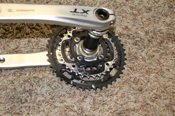 LIKE NEW SHIMANO DEORE XT CRANKS AND SPROCKETS HOLLOWTECH II ,44-32-22 180mm. CALL MIKE 8ONE8 TWO88 8095