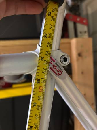 Please note, NJS frame size is determined by measuring the seat tube from the center of the bottom bracket to the center of the top-tube, making this a size 53. Most modern bike manufacturers size from the center of the bottom bracket to the top of the seat tube. This will likely be closer to what you envision as a size 55 frame.