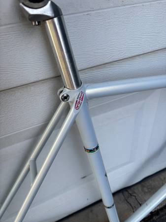 The frame is in excellent condition for its age. There are some minor cosmetic dings to the paint throughout (consistent with age), but no rust and absolutely no dents (pretty miraculous for a 20+ year old NJS frame).