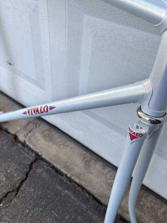 Up for sale is a Vivalo Special frameset in a stunning ice blue metallic finish with red decals. Peak Japanese steel craftsmanship - the lugs are gorgeous. Based on the serial number, I believe this to be from 2004. I built this up earlier this year in the hopes it'd be a forever bike, but sadly, it's a size too big for me.