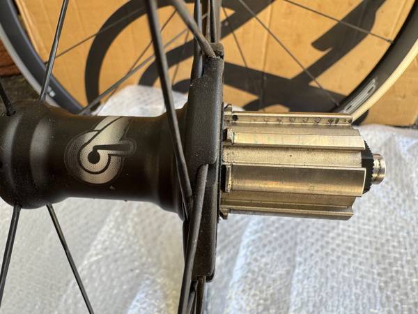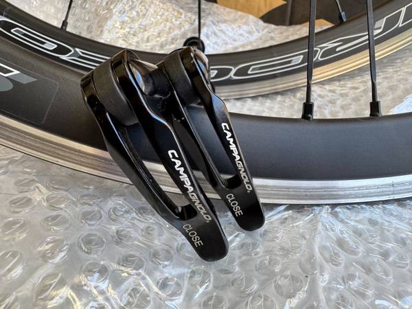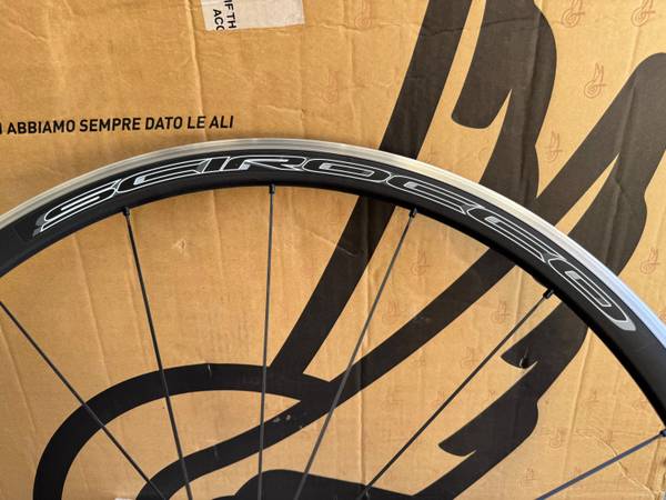 Campagnolo Scirocco C17 rim brake wheelset. Lightly used, maybe 200 miles. Campy 9-11 freehub. Quick release and you have to use tubes with these. Great wheels and a super deal.