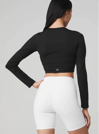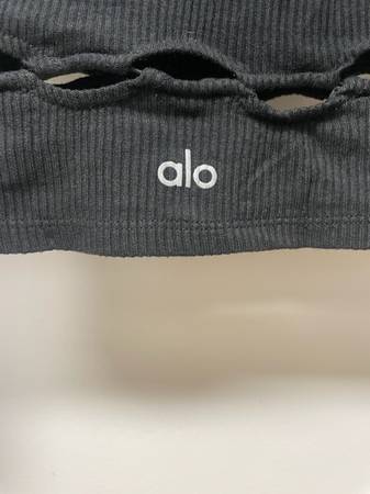 Great condition... Price is firm. Retailed for $75 + tax. The inside size tag was removed- it's a Small but runs small. Black ribbed crop top with cut outs at the hem. Logo at lower back.