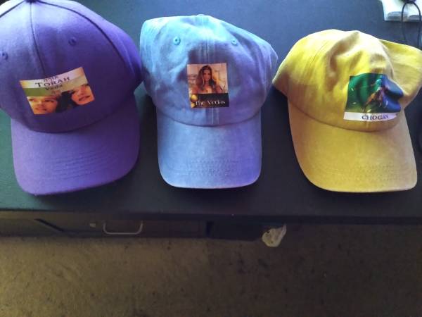 a purple cap with "The Torah,"