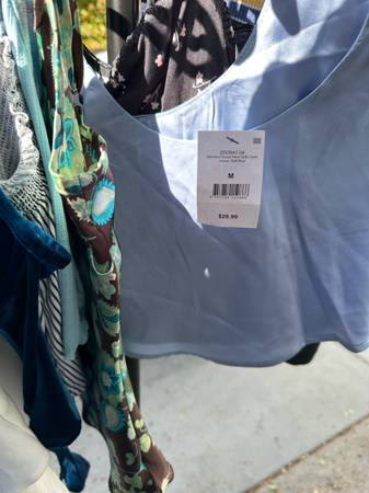 Cleaning out the closet. Large lot of miscellaneous clothing— skirts, dresses, pants, leggings, jeans, sweaters, shirts, tank tops, and bodysuits. Several items still new with tags. Could be a good opportunity for a reseller. I just don’t have the time or patience to list things and sell stuff one at a time.