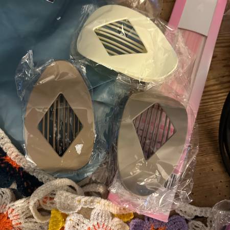 All brand new: hair clips and barrettes, shower caps, crochet head scarves, headbands, hair tinsel. Pick up at the Encino post office at 5805 White Oak (between Burbank and Oxnard) Cash only. Thanks...