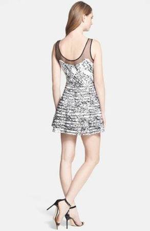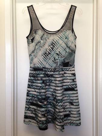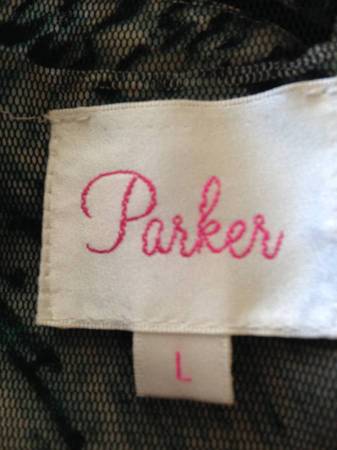 PARKER Silk Mesh Panel Print Skater Dress in Black Splatter, Sz Large.. in excellent condition. Beautiful and sexy.