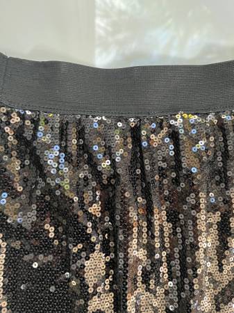 Black Sequin Mini Skirt Go have fun! Waist 26 elastic top to hem: 15