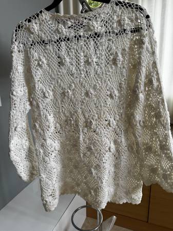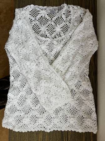 Light sweater weight - beautiful crochet pattern with scalloped edges and 3/4 sleeve