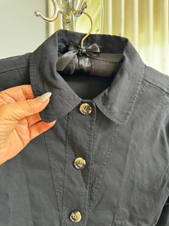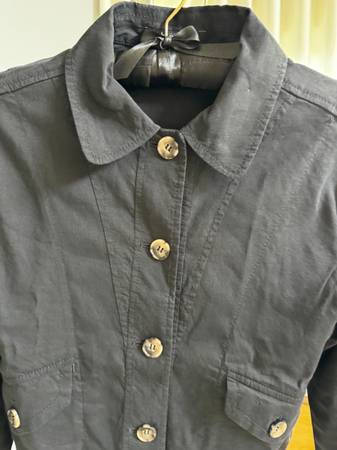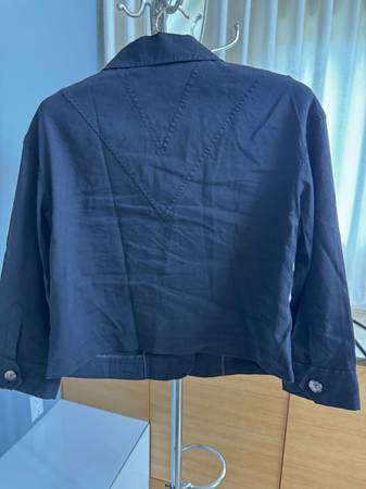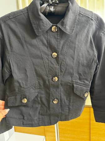 Theory Cropped Linen Jacket Black Super Cute stitching - buttons and front pockets - very well made and polishes every outfit - Great third piece 67 Linen/30 viscose/2 spandex/ 19 shoulder to...