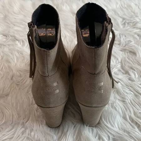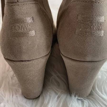 Toms wedge tan taupe ankle boots with zip closure. Size 7.5. In very good condition. Price is firm. Heel measures about 3.5"