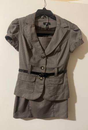 BCX 2-Piece Brown Short-Sleeve Suit Set. It’s Very Beautiful, with Lining Inside, the Skirt Has a Slit and a Zipper. Size- Small