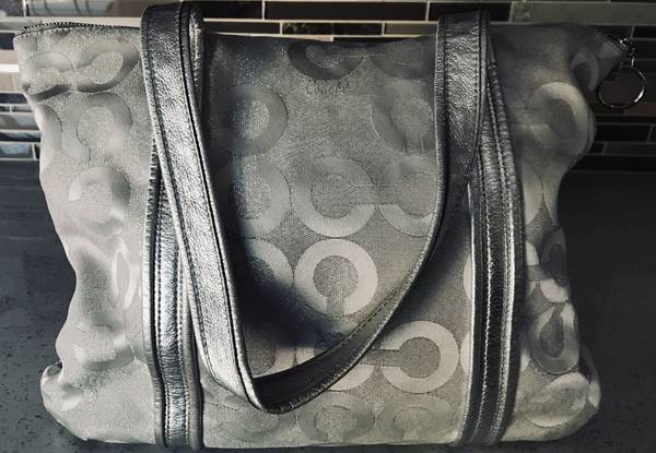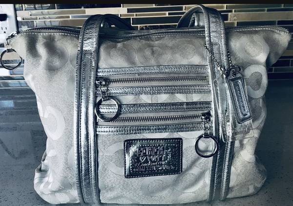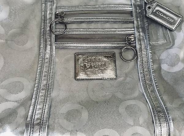 Silver color Coach tote bag with dust bag.