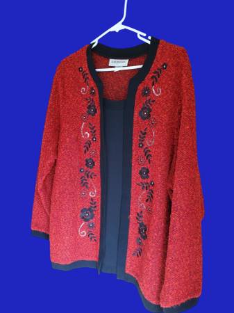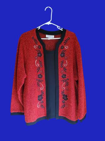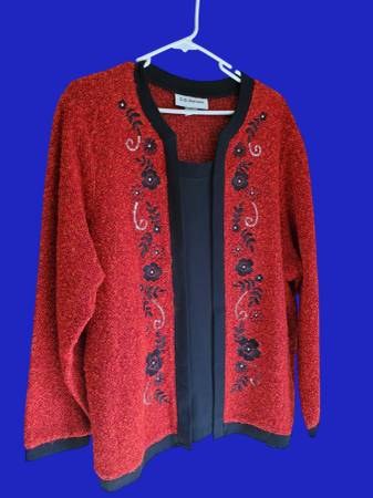 - Vintage 90s Red and Black Floral Embroidered Sweater