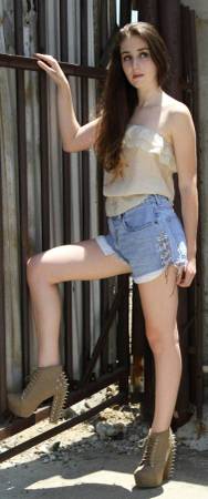 The first 5 photos show the pair of high-waist Cut Off Levi shorts is a size 26" waist that are being sold in this listing. They feature a pale faded blue jean with a lace-up side, using silver grommets and tan suede ties.