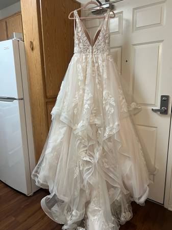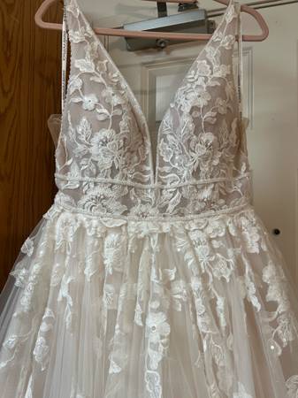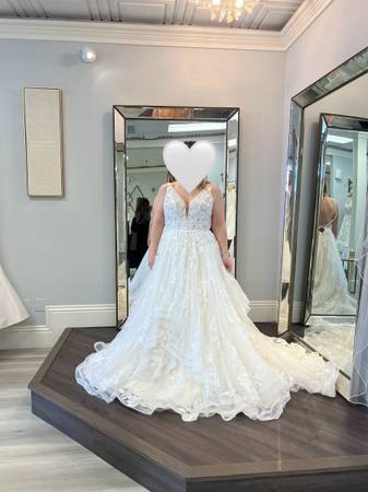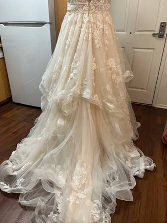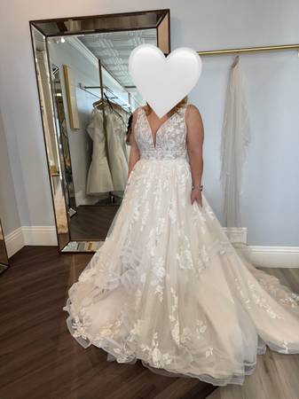 This beautiful dress was bought from a bridal boutique in Newport. While it is a gorgeous dress, it does feel like it belongs to this owner. I am hoping whoever is meant to wear this dress on their wedding day, will find this and wear it. May you feel just as beautiful in this dress as you already are. Never worn. Brand new. Still in original garment from boutique. Size: US10 UK12. Cash Only. Price negotiable.