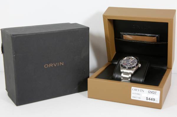 I am selling this *NEW* - ORVIN OVD7 FIELD DIVER SUNRAY BROWN AUTOMATIC WATCH. This watch is BRAND NEW, in excellent condition. Still has the plastic cover on the sapphire crystal. Please feel free to call or text with questions show contact info