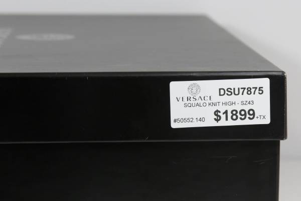 I am selling this *NEW* - VERSACE DSU7875 SQUALO KNIT HIGH - SIZE 43 SHOES. These are a BRAND NEW pair, never warn, never put on. This is a rare pair, not sold any longer by Versace. Comes with its original box and extras.