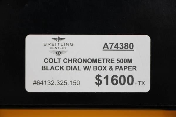 We are selling our Breitling A74380 Colt Chronometer 500MM Back Dial Watch. This watch comes with box and papers. Both box and inner box + cushions are heavily damaged, showing heavy pealing marks, button on inner box is missing. Please call or text with questions show contact info