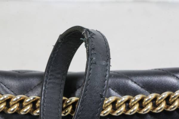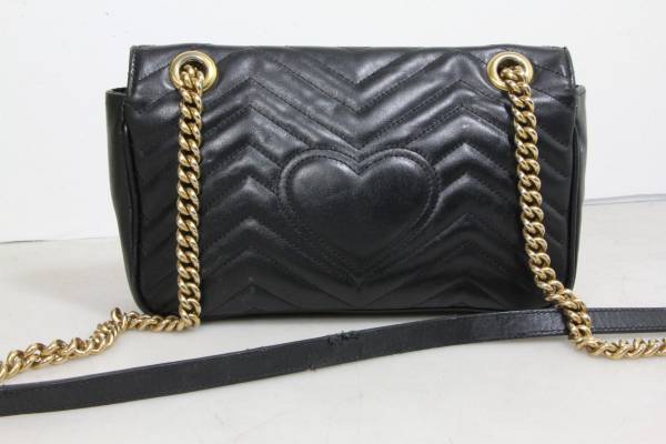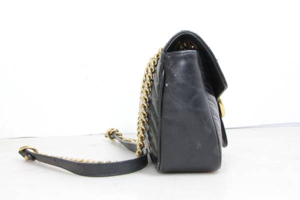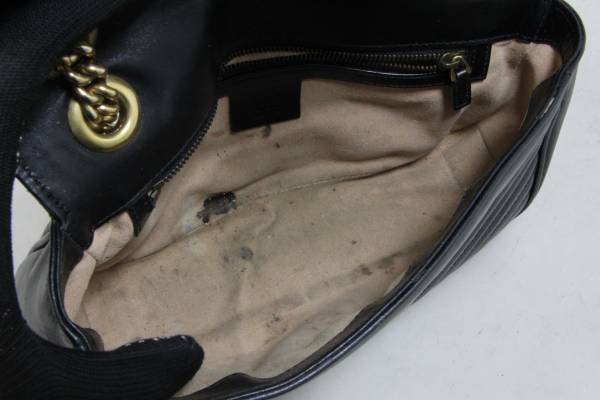 We are selling our Gucci GG Marmont Matalesse Shoulder Bag. This bag comes with dust bag and original box. It shows heavy usage and damage to shoulder strap, along with discoloration on the hardware. Please call or text with questions show contact info