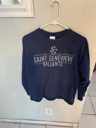 Saint Genevieve‘s high school clothing For Sale this clothing is for boys and has various sizes some small to large. There are different types of clothing so please take a look at all. The pictures price will vary depending on the item you like please send me a message and the description of the item you like and I’ll give you the price the item range from $12-$35. 12 to 35 $ each item. Take a look and let me know. Thanks.