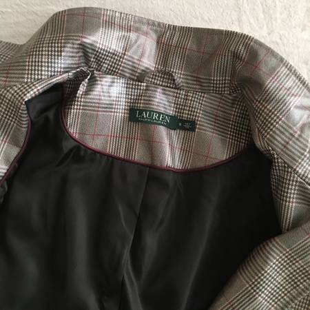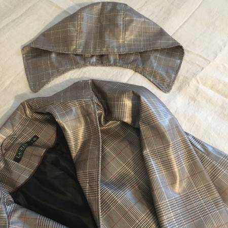 Lauren Women's Jacket/Coat/Raincoat, multi-color plaid, hooded and front buttons closure by Ralph Lauren.