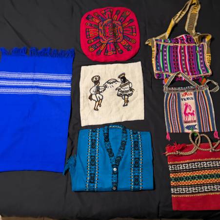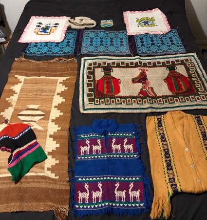 This is a Peruvian Vintage Clothing and Accessories Collection 2 sweaters, 4 Ponchos, 7 totes handbags