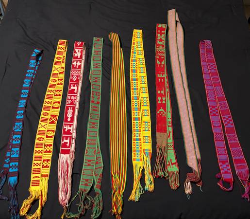 2 Pillow Cases, 1 Blue Scarf, 9 Very Colorful Belts
