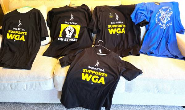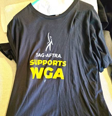SAG/AFTRA Writers Guild 2023 STRIKE T-Shirts Size XL If you are a collector don't miss out on a rare opportunity to have a piece of global history. Washed and Clean, some new. $9 ea. $20 for all...
