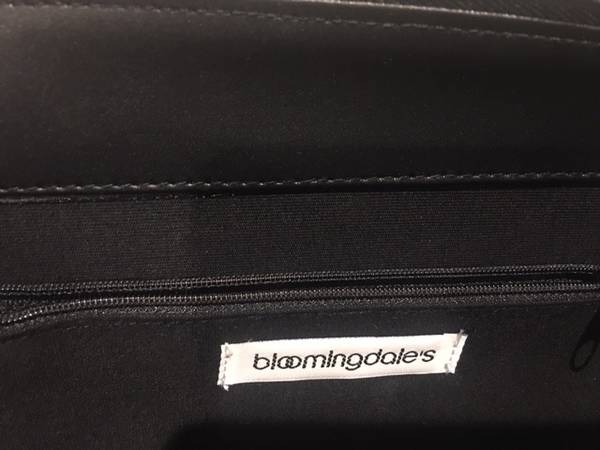 Bag measures just she of 16" tall (not including handles that extend up another 4.75"). It is 12" wide and is super flat at only 1" thick, but can expand up to 4" thick. Really streamlined, modern and classy. Super unique. Made by Bloomingdales, as the inside label shows.