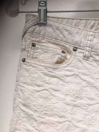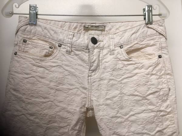 Sz 26 jeans from Free People. Beautiful cream colored jacquard pants/ jeans. Cotton spandex blend.