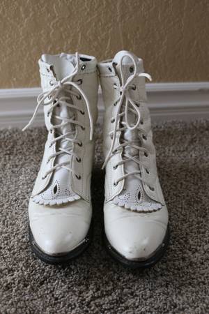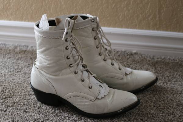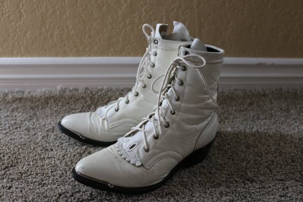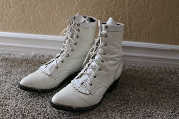 Rare Vintage White Leather Lace-up Western Boots - clothing &...