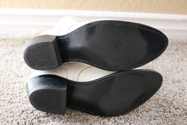Rare Vintage Justin White Leather Lace-up Western Boots Women Size 8 Mid-Calf Leather Soles; Pointed Toe Low Block Heel For Any Occasion, Casual, Party / Cocktail, Fall, Spring, Summer, Winter!...
