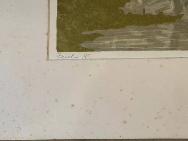 Condition: Print shows some staining in the margins as well as a few spots of foxing in the image. Matting shows numerous spots of foxing. I would recommend re-matting and it should show wonderfully.