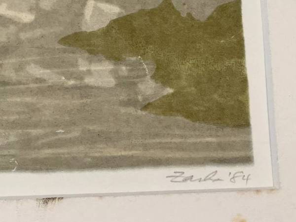 Overview: Up for sale is an incredible original serigraph print by famed listed artist, William/Bill Zacha (1920-1998). Zacha was an inspired American artist from Mendecino, California. His work includes Hiroshige-inspired takes of the 26 Stations of the Tokaido and other Japanese-inspired serigraphs. This print, "Fuchu II" is one such serigraph. It is titled at lower left, numbered 33/55 at lower center and signed and dated at lower right. Zacha's works are difficult to find. Matted in white matting.