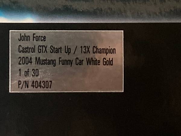 >John Force 2004 "13X Champ" 1/24 Scale Castrol "White Gold" Mustang Funny Car #30. (1 of 30)