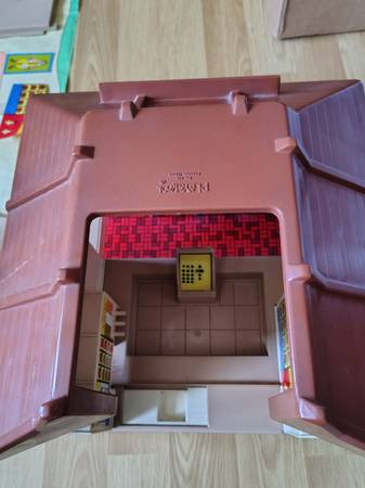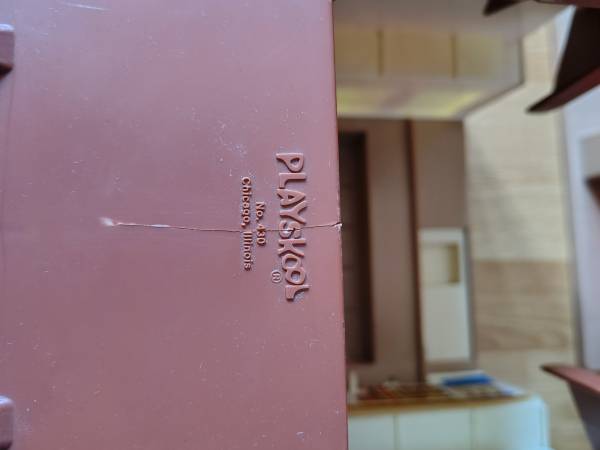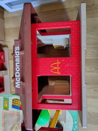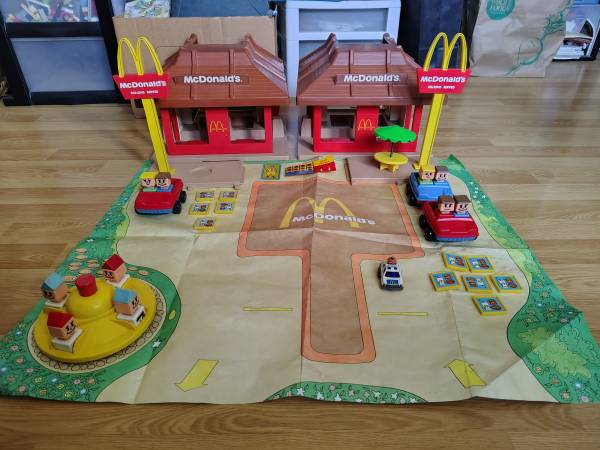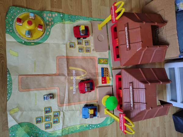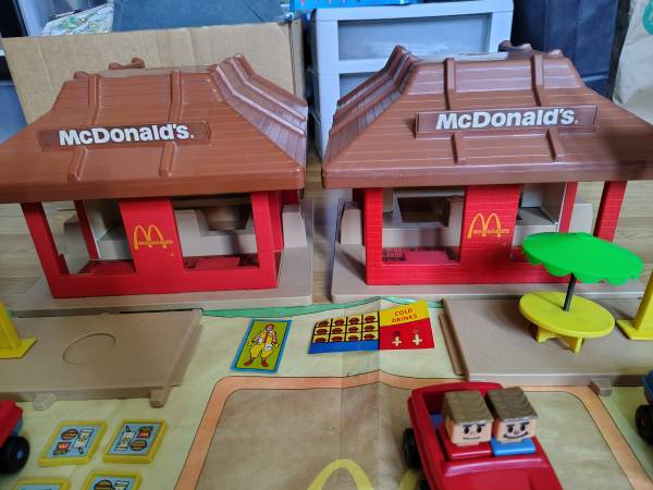 There are 2 playsets: Vintage 1974 Playskool Familiar Places McDonalds Playset #430 - both in good vintage condition. One does have a crack on the rooftop, see image.