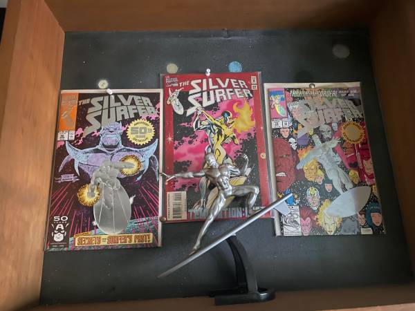 Sealed Comic books n silver surfer display. Hand made. Scooby do. Foldable mystery machine van 2 are new in packaging