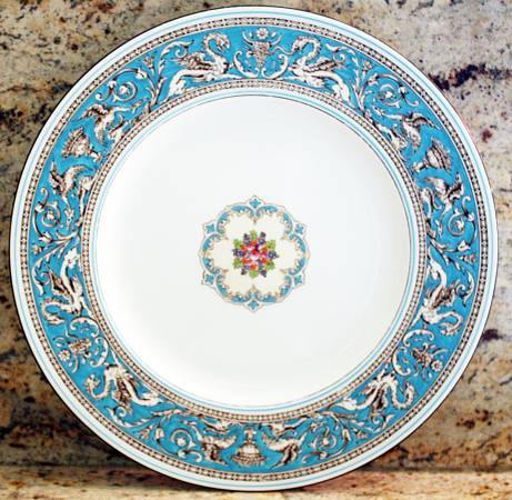 Wedgwood Florentine Turquoise fine porcelain dinner plate made in England, this pattern has proved to be one of Wedgwood’s most enduring designs, offered in many color palettes.