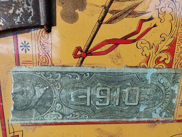 TWO "lunch pail" tins with original 1910 stickers. In very good condition, no big scratches or rust. $50 for 1 or $80 for both.