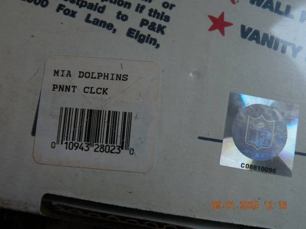 Official 1988 NFL Licensed Miami Dolphins Pennant Clock