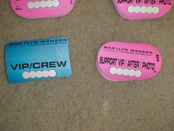 MARILYN MANSON [SUPPORT VIP /AFTER/PHOTO ] BACKSTAGE PASSES OVER 100. [ VIP/CREW ] OVER 100 BRAND NEW STILL IN BOX---- -----