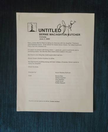 Authentic Bernie Mac Autograph on "Guess Who" Film Synopsis Sheets -...