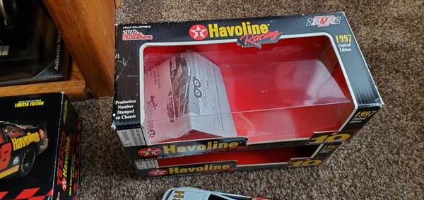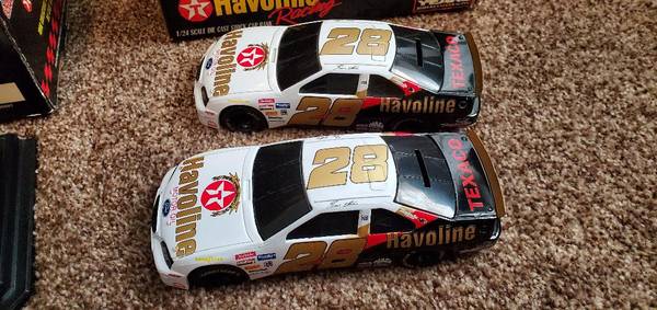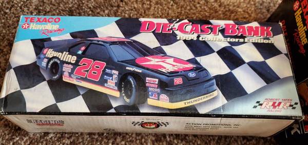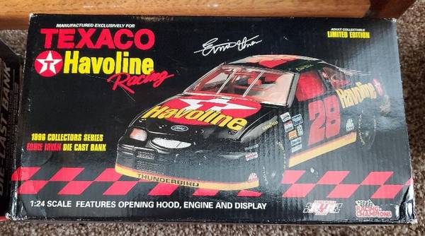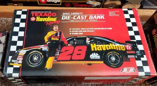 TEXACO HAVOLINE RACING CHAMPIONS COLLECTIBLE DIECAST CAR BANKS with key. 1/24 scale. Some with stands. ALL HAVE ORIGINAL BOXES. $25 each Cash Only. 1994 Robert Yates in box 1995 Dale Jarrett in box...