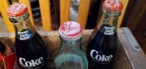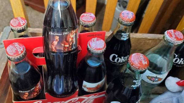 COCA COLA CRATE AND SEVERAL VINTAGE COKE BOTTLES, SUPERBOWL XXXII, CHRISTMAS 1997 6 PACK IN ORIGINAL CARTON.... MONEY BACK RETURN BOTTLES AND COCA COLA SEAL. $85 FOR ALL CASH AND PICK UP ONLY! SEE...