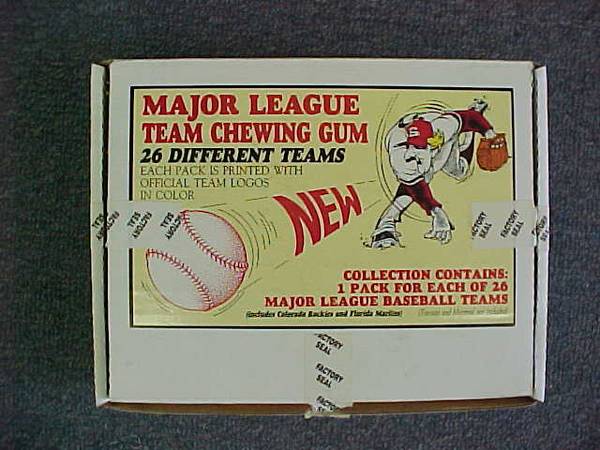 Packages have never been opened. Excellent condition. Teams include: Boston Red Sox, San Francisco Giants, Chicago White Sox, San Diego Padres, Cleveland Indians, Houston Astros, Oakland Athletics, Brewers, Colorado Rockies, New York Yankees, Pittsburgh Pirates, California Angels, Minnesota Twins, Seattle Marineers, Philadelphia Phillies, Cincinnati Reds, Detroit Tigers, Florida Marlins, Atlanta Braves, Los Angeles Dodgers, Royals, Chicago Cubs, St. Louis Cardinals, Orioles, Rangers. Comes with original display carton.