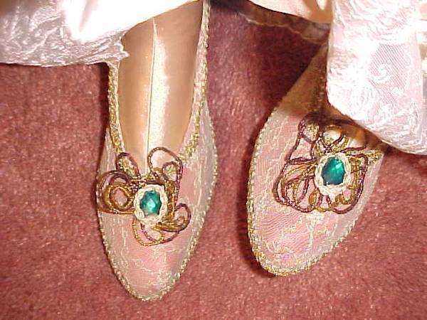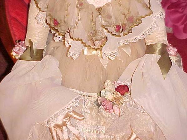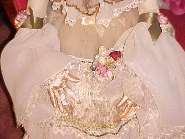 Comes with Certificate of Authenticity signed by Wayne M. Kleski. Her shoulders, hips and knees are jointed with button detail. She is holding a nosegay. Her attire is all original and in beautiful well cared for condition. Her head is made of resin. Stunning details from hat to footwear. The most elegant fabrics, with pearls and crystal accents, and other detailed embellishments were used for her attire. Being a retired edition will most likely make her highly collectible and over time increase in value.